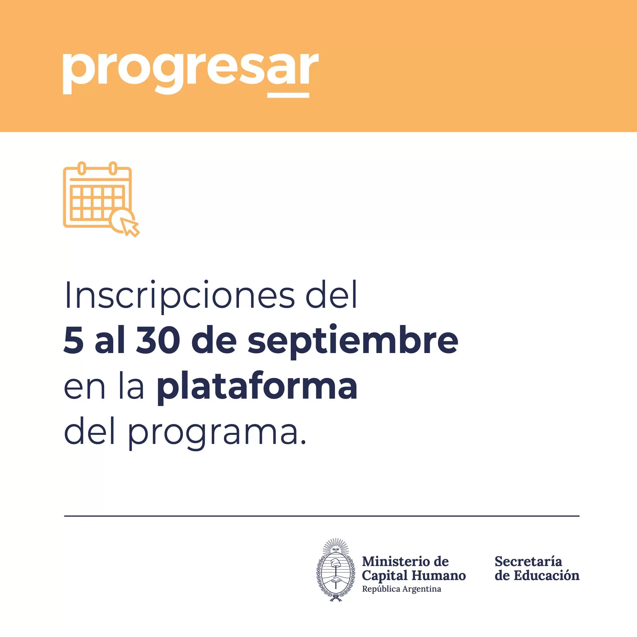 Además, se anunció que el segundo periodo de inscripción estará abierto desde el 5 al 30 de septiembre para las líneas Progresar Obligatorio y Progresar Superior (que incluye Enfermería).