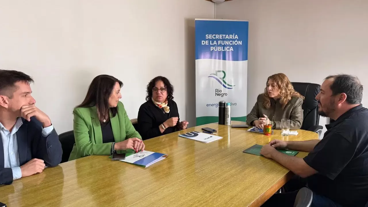 La reunión se desarrolló en Viedma con la presencia de la Secretaria de la Función Pública, Tania Tamara Lastra; la Secretaria de Hacienda, Natalia Crociati; el Secretario de Gobierno, Agustín Ríos; la representante de UPCN, Mónica Miranda, y el representante de ATE, Rodrigo Vicente.