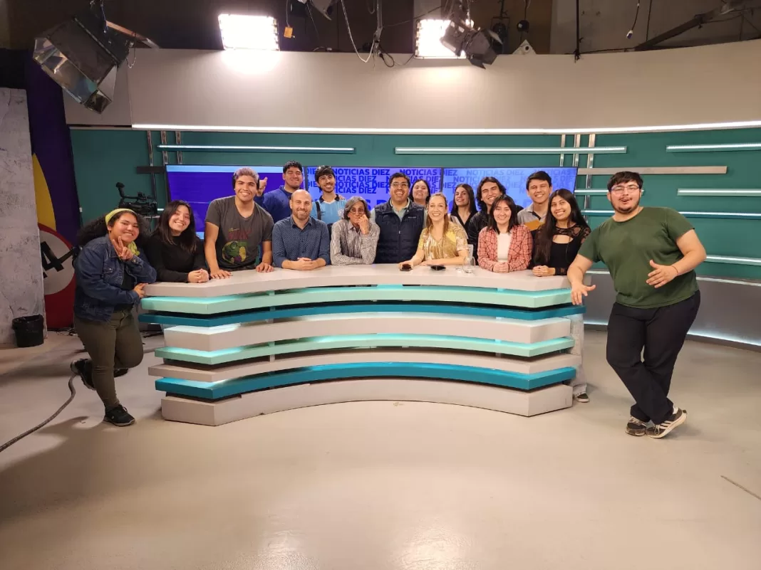 El grupo de 15 estudiantes se encuentra en el segundo cuatrimestre de la práctica audiovisual de locución informativista, publicitaria e interpretativa y de opinión. Durante la visita, pudieron observar en vivo la dinámica completa de producción de este noticiero regional.