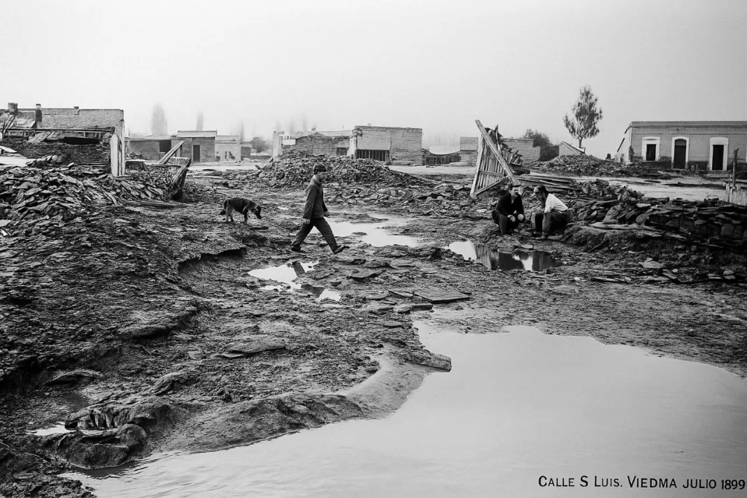 Hace 126 años, Viedma vivió la peor catástrofe natural de su historia. El 21 de julio de 1899, una crecida abrupta del río Negro, tras semanas de intensas lluvias en la cuenca del Limay, rompió los terraplenes construidos como defensa y arrasó la ciudad. El agua ingresó con fuerza desde el sur y, en apenas unas horas, alcanzó techos, anegó calles, destruyó viviendas y dejó inutilizables edificios clave del Estado.