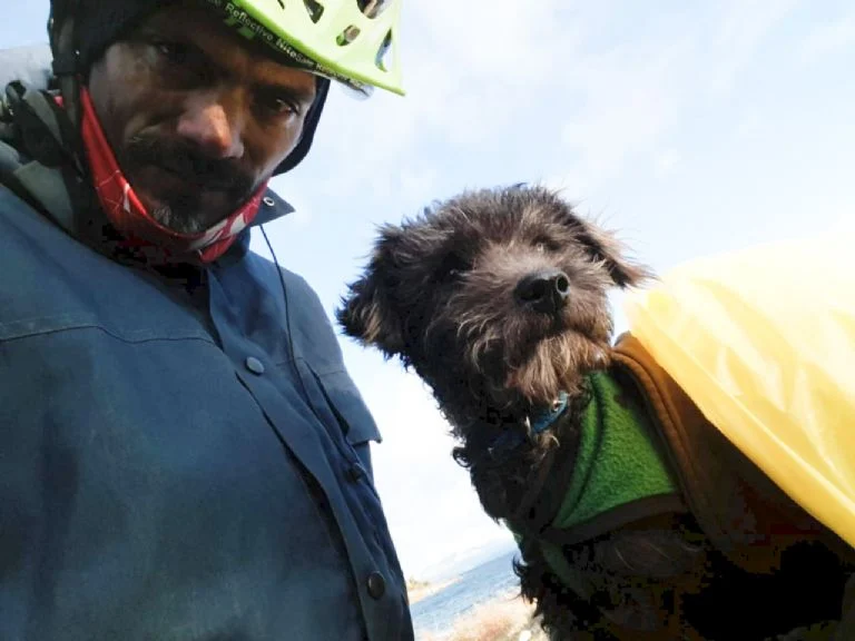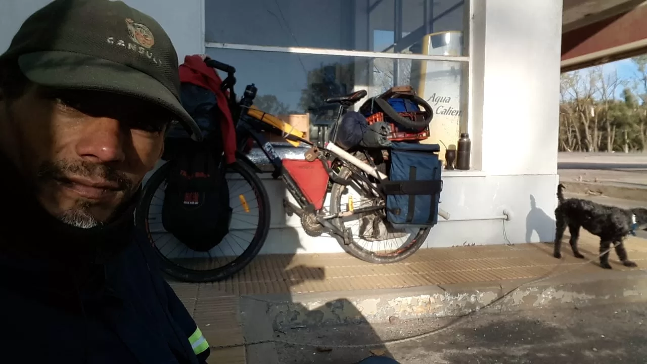 En el camino encontró a un fiel compañero, Coco, su perro, con quien ahora recorre las rutas argentinas. Llegó a Bariloche, p|ero el clima no es amigable con una persona en su situación, por lo que decidió que las dos ruedas lo acerquen al Alto Valle. En este momento se encuentra en Cipolletti, buscando nuevos rumbos.